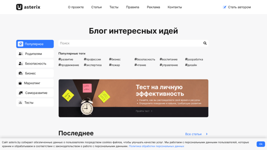 | AI-анализ | In the blog "Asterix Interested Ideas," the author shares fascinating research findings and together, we explore the possibilities of the future. The website covers a wide range of topics including business, marketing, self-development, and safety for parents. Keywords associated with the site include "veronika," "stepanova," "articles," "oleya," "egorova," "tests," "safety," "business," "parents," and "marketing." The most frequently used words are "veronika," "stepanova," "articles," "oleya," and "egorova." The website includes sections on projects, articles, tests, rules, and reclama, as well as author submission guidelines. Popular topics include safety for parents, business, marketing, and self-development. The blog features articles by Oleysa Egorova on emotional flexibility in everyday life, |