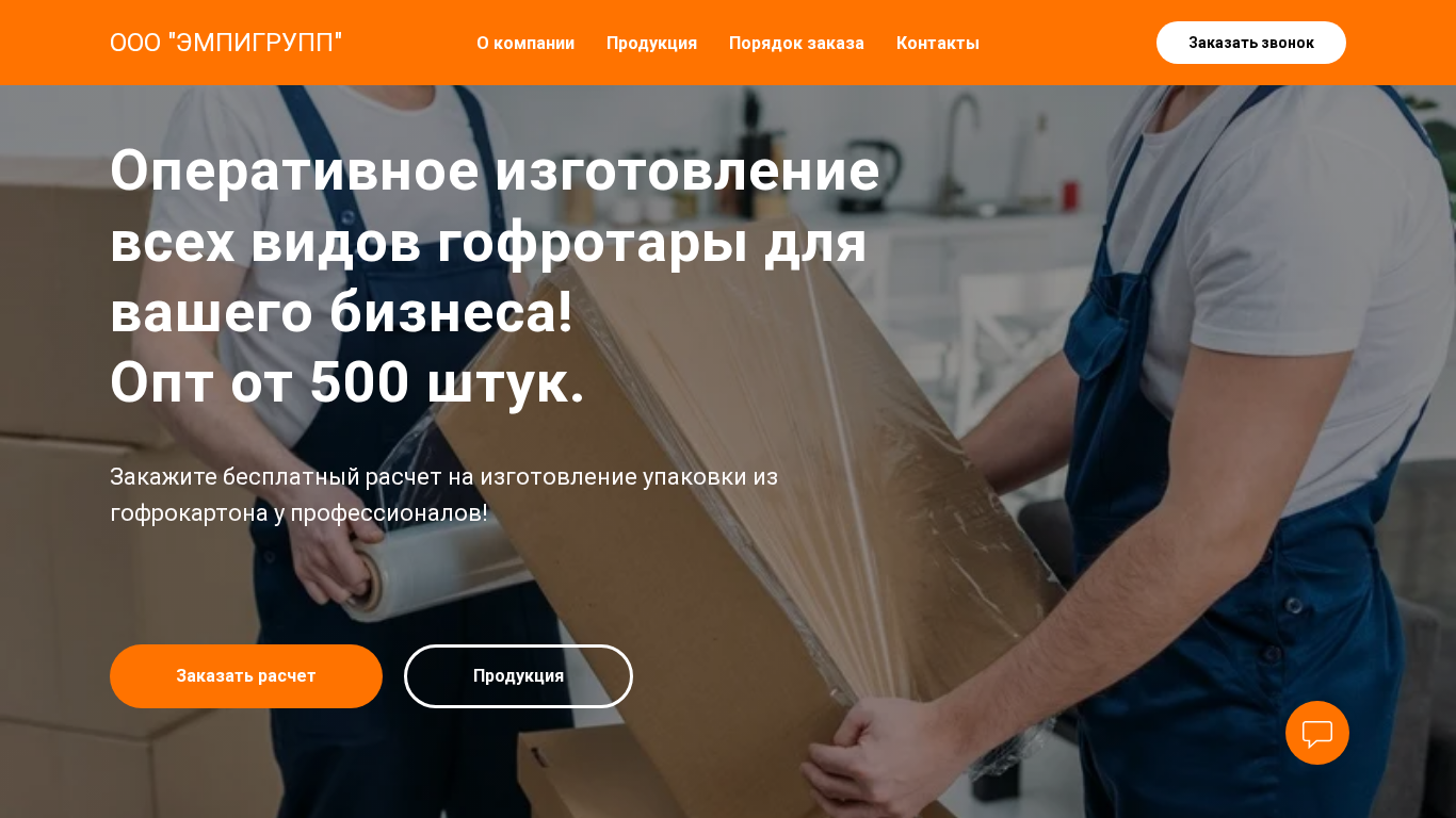 | AI-анализ | The website is for ООО "ЭМПИГРУПП" (Emigrup), a company specializing in the production of gofrocardboard packaging. The description mentions the individual manufacturing of complex gofrocardboard packaging using modern equipment and the application of flexo-printing for high-quality production. The company has a decade of experience in the field of making materials for packaging. The product range includes gofrotaar, a popular type of industrial packaging made from corrugated cardboard, with a wide range of applications depending on the type of product. The website offers a free quote for the production of gofrocardboard packaging and mentions a self-owned warehouse for quick turnaround times, a wide assortment of over 7000 different packaging items and boxes, and the ability to produce all types of gofrocardboard packaging and FEFCO catalog |