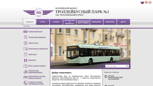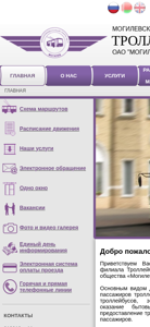 | AI-анализ | The web project "Троллейбусный парк №1" is the official website of the Moгилевsky filial of the Open Joint Stock Company "Могилевоблавтотранс" in Belarus, providing information and services related to the public transportation sector, primarily focused on trolleybuses. The site offers various features including route schedules, fare payment systems, contact information, and news. With over 100 trolleybuses and 3 electric buses in operation, the site caters to the public's transportation needs, while also providing information on the history and operation of the Trolleybus Park. The site's content is predominantly in Russian and aims to keep the public informed about the services, routes, and news related to the Moгилевsky filial of the company. The site also provides contact information for various departments, including |