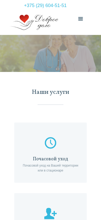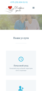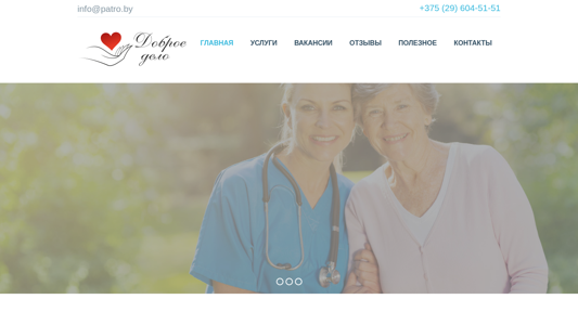 | SEO-описание | "Доброе дело" оказывает патронажные услуги населению Минска, осуществляется полный и почасовой уход за больными и пожилыми людьми. |