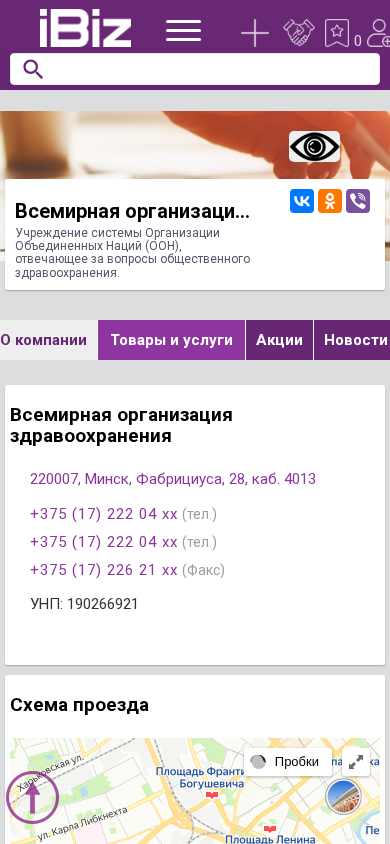 | Название / Заголовок | Всемирная организация здравоохранения - Учреждение системы Организации Объединенных Наций (ООН), отвечающее за вопросы общественного здравоохранения.. 220007, Минск, , Фабрициуса, 28, каб. 4013 |