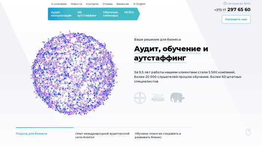 | AI-анализ | --- The web project "Erudite.by" is a Belarusian auditing and educational center. The company prides itself on its highly qualified team of professionals with rich practical experience, enabling it to find comprehensive solutions to even the most complex tasks. The website offers auditing services, including financial reporting audits, tax audits, and HR consulting. It also provides educational services, such as MSFO training and seminars. The contact information includes phone numbers and email addresses for the auditing and educational centers, as well as a recruitment hotline. The website features a logo and is located in Minsk. The company has been in business for over 9 years and has served over 5,500 companies and 20,000 students. It is a member of the Kreston international auditing network and adheres to international audit standards. The center for professional development offers training |