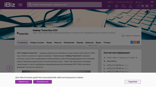 | AI-анализ | The web project "Beyker Tilly Bel OOO - Audit. Services in the field of MSFO. Accounting and Tax Accounting. Corporate Services. Consulting. Outsourcing." is located at 220007, Surazhskaya 10, office 4, in Minsk, Belarus. The company offers audit, corporate services, services in the field of MSFO (Management and Financial Operations), consulting, and outsourcing. It is a leading auditing company that started its operations in 2004, formerly known as "Tsarev and Partners." The company became "Beyker Tilly Bel OOO" when it became an independent member of the worldwide renowned international network of companies providing auditing and consulting services – Baker Tilly International. The company is also listed among the approved international organizations such as EBRD and M |