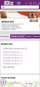 | AI-анализ | This online resource is a Belarusian business directory listing for ФРИАЛ ООО, an importer of calculators, organizational technology, communication equipment, banking equipment, bakery equipment, pneumatic and airsoft weapons. The website provides contact information and a map for the company located in Minsk, Belarus, at Нагорный пер., 6Б. The directory includes sections for computer and organizational technology, banking equipment, and features a search function and contact information for the company. |