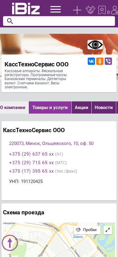 | AI-анализ | The web project "КассТехноСервис ООО" is a Belarusian business located at 220073, Mikashevichy Avenue, Olshevskogo 10, office 50 in Minsk. The company specializes in the sale and service of cash registers, fiscal register machines, programmable cash registers, banking terminals, currency detectors, banknote counters, and electronic scales. The contact details for the company include phone numbers for A1, MTS, and tel/fax, as well as an address and a map for visitors. The business hours are from 08:55 to 18:00 on weekdays, except for Thursday which is open from 08:55 to 18:00 without lunch, and closed on weekends. The company can be found |
