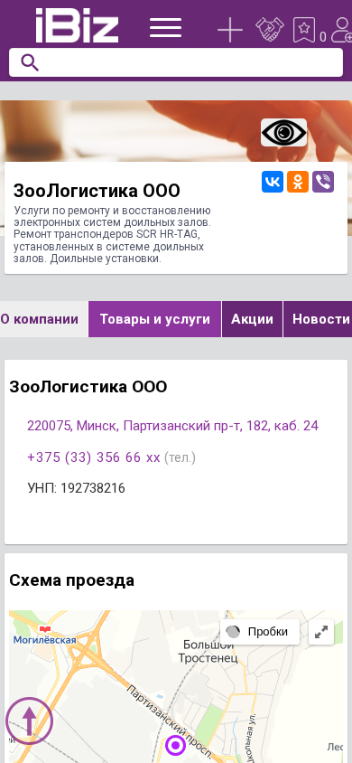 | Название / Заголовок | ЗооЛогистика ООО - Услуги по ремонту и восстановлению электронных систем доильных залов. Ремонт транспондеров SCR HR-TAG, установленных в системе доильных залов. Доильные установки. . 220075, Минск, , Партизанский пр-т, 182, каб. 24 |