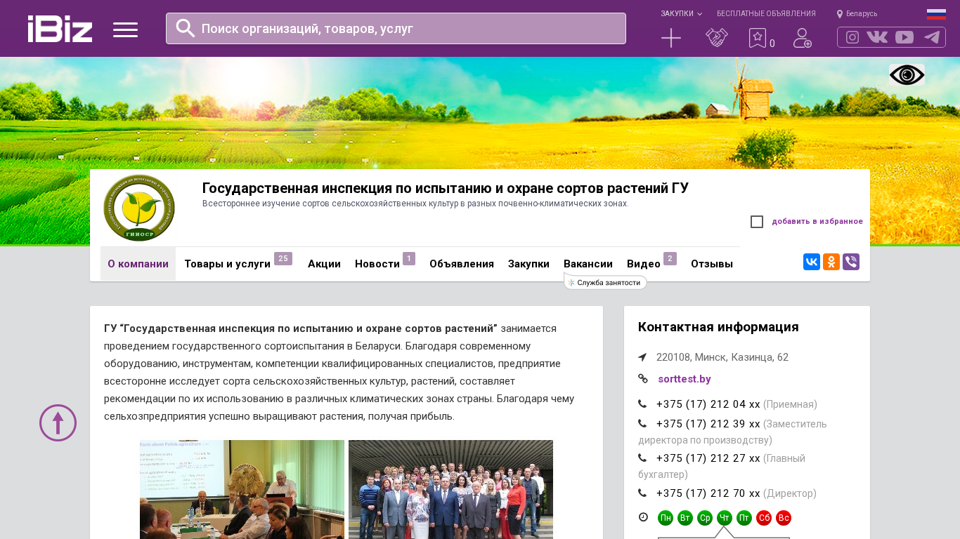 | AI-анализ | The web project "Sorttest.ibiz.by" is a Belarusian state institution responsible for the comprehensive examination of various agricultural crop varieties in different soil-climate zones. Located in Minsk, at Kazintsa 62, the organization provides state testing and protection of plant varieties. The website includes sections for company information, products and services, news, and job vacancies. Keywords associated with the site include 'types', 'services', '375', 'crops', 'agricultural', 'cultivars', 'procurement', 'announcements', 'Belarus', 'new', 'notices', 'personal cabinet', and 'menu'. The site offers free procurement announcements and operates 19 sorting and testing units, including 11 stations and 8 plots. The Central Republican Laboratory determines new varieties. Testing is conducted on agricultural |
