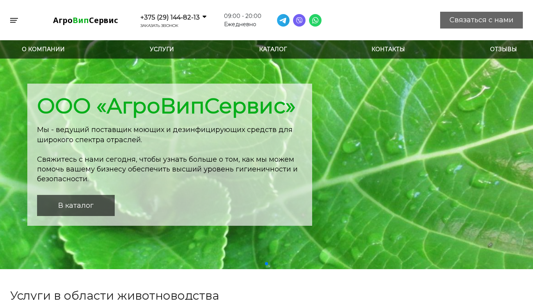 | Название / Заголовок | Ведущий поставщик моющих и дезинфицирующих средств | АгроВипСервис |