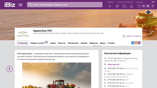 | AI-анализ | This online resource is dedicated to the agricultural business and offers a range of products and services related to it. The company, AdvansAgro OOO, provides agricultural machinery, spare parts, and services, as well as seeds of cereal crops and protective plant products. The website includes a map for directions, contact telephone numbers, and the company's address at 223050, Minsk district, Korolev Stan d., School, 36Б-10, pom. 211. The company's phone numbers for spare parts and service, sales, and technical support are provided, along with operating hours from Monday to Friday, except for weekends. |