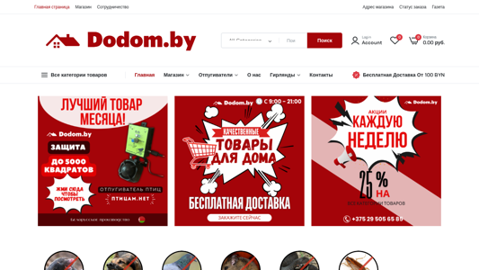 | AI-анализ | --- The web project Dodom.by is an online store specializing in animal repellents. The website offers a wide range of products for different types of animals, including rodents, birds, reptiles, and insects. The store features brands such as EcoSnaiper, Yastreb, Sititek, and Weitech BROS. Customers can browse products by category, price, and animal type. The website includes a search function and a navigation menu with links to various product categories, login, account, cart, and wishlist. The homepage displays a list of product categories with their respective number of items in stock. The website also offers a special section for promotions and discounts. The store is currently offering an 8% discount on all items. The domain name is dodom.by. |
