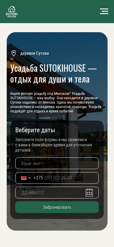 | Название / Заголовок | Усадьба SUTOKIHOUSE под Минском — отдых с бассейном, баней и зоопарком |