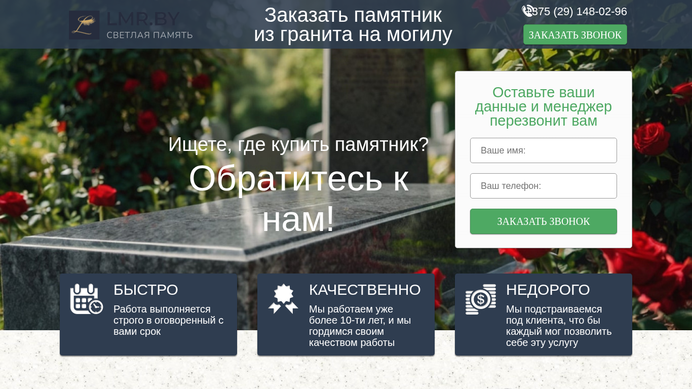 | SEO-описание | Купить памятник в Минске с установкой. Изготовление надгробий из гранита под заказ. Индивидуальный подход, качество, доставка и монтаж по городу и области. |