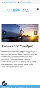 | AI-анализ | The portal is a website for OOO PrimGrad, a Belarusian company located in the Prilovsky district of the Minsk region, with the postal address 79, Prilovny settlement, district of Lugovoslobodskoe, 223062, Republic of Belarus. The company specializes in international transportation services and places great emphasis on the quality of its services to maintain its and its clients' reputations. The website provides information about the company, its services, and contact details. The top words on the page include 'company', 'services', 'contacts', 'reputation', and 'international transportations'. The company's UNP number is 808001685. The contact details are '375 17 308 57 46' and '[info@ |