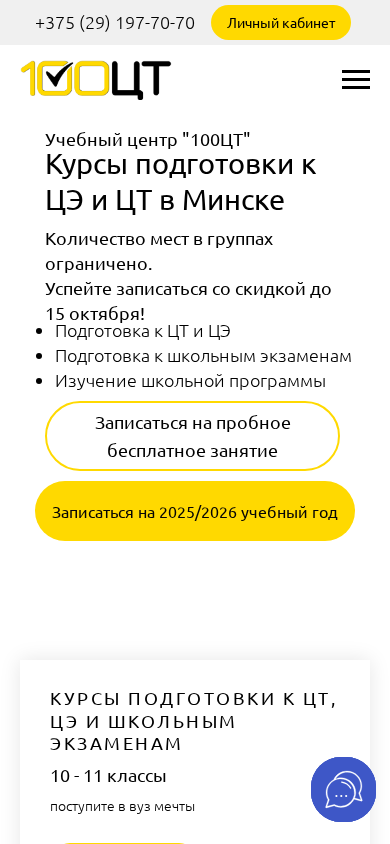 | SEO-описание | Лучшие курсы по подготовке к ЦТ, ЦЭ в Беларуси ⭐️ Средний балл учеников 80+ ⏩ Скидки на обучение! ⭐ Пробное бесплатное занятие по всем предметам. |