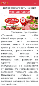 | AI-анализ | The website "Мясная лавка" (Meat Shop) is a retail business website developed using create-react-app. The site features a homepage with sections for the assortment, sales, a list of stores, vacancies, and contacts. The company, Unitary Enterprise "Trade House" ZAO "Vitebskagroproduct," operates a chain of over 80 meat shops in Vitsebsk, Minsk, and Mogilev regions. The shops follow a standardized service model regardless of size or location. The enterprise is part of the Slaviansky Veles agricultural holding company, which includes several other meat production and supply businesses in Belarus. The company's mission is to provide Belarusian residents with fresh, high-quality meat products at affordable prices. The website offers convenient store locations and daily delivery of fresh meat products from the holding |