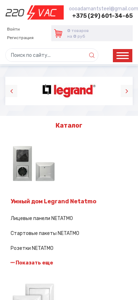 | AI-анализ | --- The portal 220VAC.BY is an online electronics and electrical appliances store. Visitors can purchase a wide range of electrical equipment and electronics at affordable prices. The top keywords associated with the website include 'electrotechnical store', 'electricity store', 'electricity site', 'electro appliances online shop', and 'electro appliances sales'. The most frequent product mentions are 'Netatmo' and various types of switches and sockets. The website offers a catalog, comparison feature, and a favorites section, but no products are currently listed and no prices are indicated. The website contact information includes an email address and a phone number. |