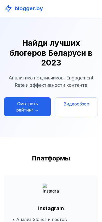 | Название / Заголовок | blogger.by — Рейтинг блогеров Беларуси | Аналитика Instagram, YouTube, TikTok |