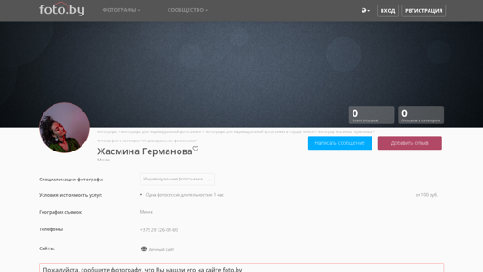 | AI-анализ | The web project "Фотограф Жасмина Германова, Минск. Фотографии в катеgorии "Индивидуальная фотосъемка"" is a photography website for a photographer named Жасмина Германова based in Минск, Belarus. The website primarily focuses on individual photo sessions, as indicated in the project title and the main category of the photos displayed. The photographer also offers services for content and advertising photo shoots. Keywords related to photography, individual sessions, and the photographer's name are prevalent in the top_words. The website includes a catalog of photographers, a community for photographers, and various categories such as automobiles, animals, architecture, and more. The photographer's personal website can be found on foto.by. |
