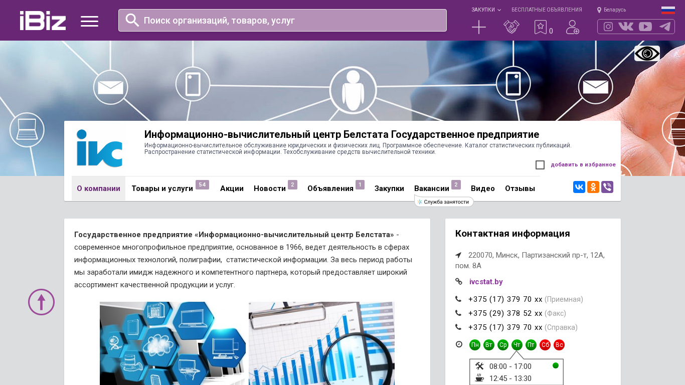 | AI-анализ | The portal is the official website of the State Information and Computing Center Belstat, providing information technology services for legal and physical entities. The website offers software solutions, a catalog of statistical publications, and statistical information distribution. It also provides technical support for computing equipment. The address and contact information for the Information and Computing Center Belstat are provided on the website. |