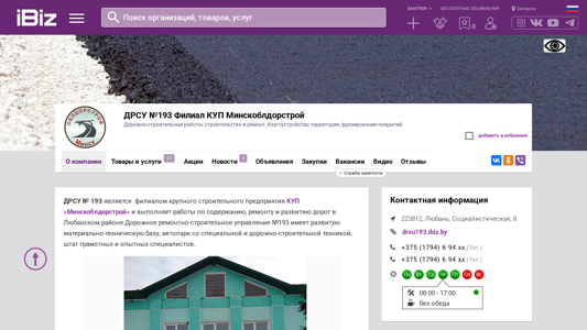 | AI-анализ | The web project <DRSU193.IBIZ.BY> is a branch of the large-scale construction enterprise KUP "Minskoblgorstroy" and provides services for the maintenance, repair, and development of roads in the Luban district. The Road Construction and Repair Unit #193 has a well-equipped material and technical base, a fleet of specialized and road-building machinery, and a team of skilled and experienced professionals. The unit offers the following services: construction and repair of automobile roads; improvement of roadside areas; milling of road surfaces; construction of structures at road intersections; and application of markings and sign installation. The team uses high-quality materials, modern methods and technologies to ensure timely completion of projects, adhering to all contractual obligations and client preferences. Additionally, construction and road equipment are rented out. Competitive prices, high-quality |