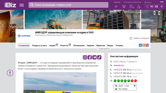 | AI-анализ | The portal "Amkodor-managing company of OAO Amkodor" is a producer of specialized equipment and machinery in Belarus and CIS countries. The company, which is an part of OAO Amkodor, annually releases over 5,000 units of high-tech specialized machinery. The holding company "Amkodor" includes 29 enterprises and 3 branches without legal entity status. Among them are: "Udarik" Plant; "Dormash" Plant; "Dormashmet" Plant; ZAO "Amkodor-Unikab"; ZAO "Amkodor-Pinsk"; OAO "Amkodor-Unimod"; OAO "Amkodor-Belvar"; "Zavod SVT" UP; "Amkodor-Radian" UP; Z |