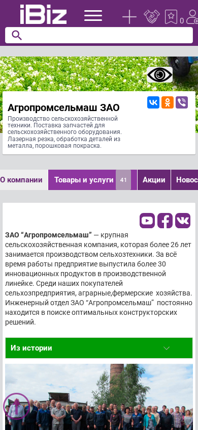 | AI-анализ | The web project "Агропромсельмаш ЗАО" is a Belarusian company specializing in the production of agricultural machinery and the sale of parts for agricultural equipment. The company offers laser cutting, metal processing, and powder coating services. The address is 231300, Lida, Kachan, 19. The company's production portfolio includes over 30 innovative agricultural machinery products and caters to agricultural enterprises and farms. The engineering department is continuously seeking optimal design solutions. The company was founded in 1991 as a successor to "Лидсельмаш" in the city of Lida. Initially, the company focused on the production of elevators for potato farmers. Within three years, two new types of elevators were developed and launched into production. Until 2001, the company supplied spare parts for |