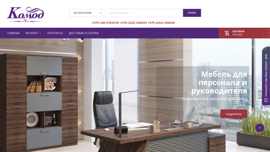 | AI-анализ | --- This online resource is a Belarusian e-commerce website offering office and home furniture for sale in Gomel and the surrounding area, under the brand name Комод (Comod). Customers can buy office and home furniture with quick delivery from the store located at Барыкина 84 in Gomel. The website features a wide selection of office furniture, bar and hotel furniture, and furniture for homes. Keywords related to buying office and home furniture in Gomel, as well as furniture for the home, are frequently used on the site. |
