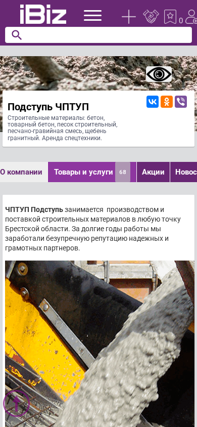| Название / Заголовок | Подступь ЧПТУП - Строительные материалы: бетон, товарный бетон, песок строительный, песчано-гравийная смесь, щебень гранитный. Аренда спецтехники.. 225306, Кобрин, , Промышленная, 16 |