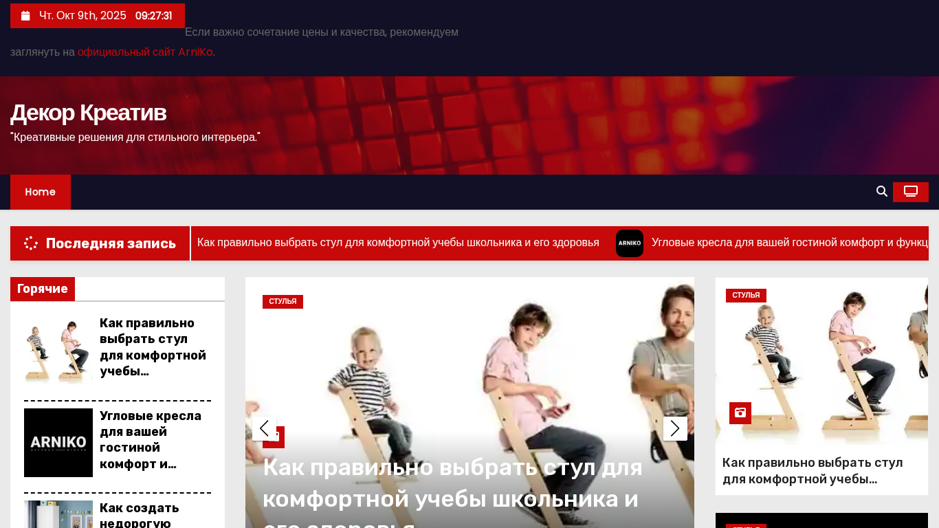 | AI-анализ | The web project "Декор Креатив" offers creative solutions for stylish interiors. The site provides advice on selecting furniture for a comfortable and functional study environment for schoolchildren and their health. It also recommends angular chairs for a comfortable and functional living room. The site offers advice on creating an affordable children's room for a 2-year-old boy without unnecessary expenses. It also provides recommendations on selecting a bed for a bedroom with low ceilings and optimizing space. The site offers advice on selecting chairs for cafes or restaurants. The site also includes articles on how to choose a chair for a comfortable study environment for schoolchildren and their health, angular chairs for a comfortable and functional living room, creating an affordable children's room for a 2-year-old boy without unnecessary expenses, selecting a bed for a bedroom with low ceilings and optimizing space, and selecting chairs for cafes or restaurants |