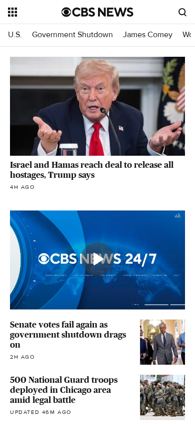 | SEO-описание | CBS News offers breaking news coverage of today's top headlines. Stay informed on the biggest new stories with our balanced, trustworthy reporting. |