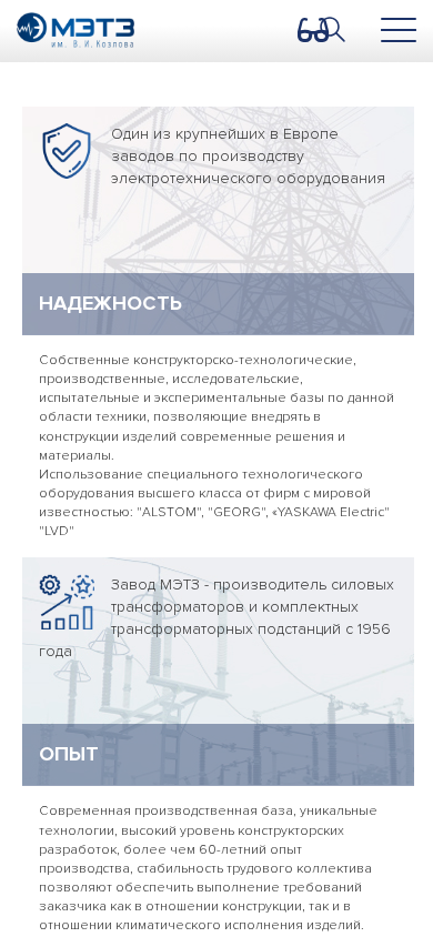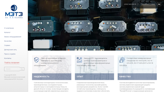 | SEO-описание | Производство электротехнического оборудования - МЭТЗ им. Козлова, сайт электротехнического завода ⏫ Надежность ⏫ Опыт ⏫ Качество |