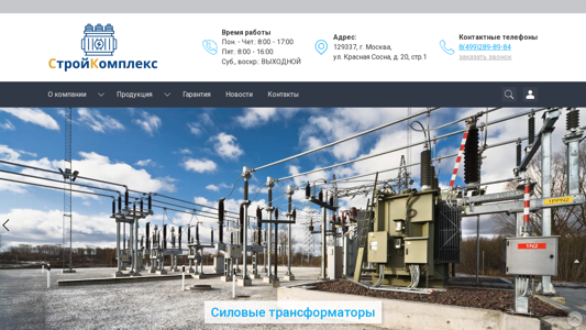 | SEO-описание | Официальный сайт ООО "Стройкомплекс", официального дилера Минского электротехнического завода им. В.И. Козлова. Продажа трансформаторов, трансформаторных подстанций |