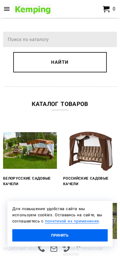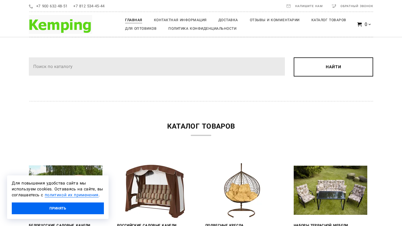 | AI-анализ | --- The portal kempingspb.ru is an online store for garden furniture for cottages in Saint Petersburg. It offers garden furniture for sale at low prices. The store delivers to Saint Petersburg and Leningrad region. The telephone numbers for customer service are 8 (900) 632-48-51 and 8 (812) 534-45-44. The catalog includes various types of garden furniture such as swings, chairs, beds, and tables. |