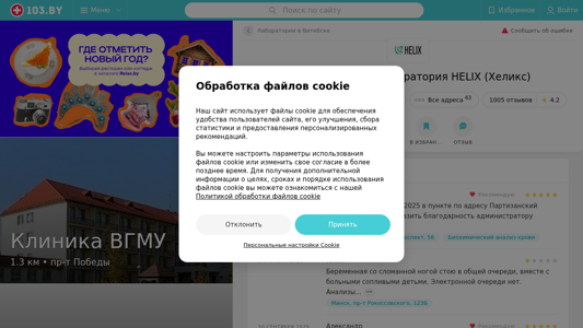 | Название / Заголовок | Международная лаборатория HELIX (Хеликс) Витебск ул. Воинов-Интернационалистов 1Д: отзывы, телефоны, график работы |