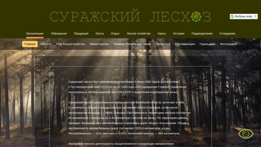 | AI-анализ | The website "Суражский лесхоз" (Surazh Forestry) is an organization involved in forestry, hunting, recreation, and forestry management in Belarus. Established in 1936, the Surazh Forestry covers 84,919.6 hectares, with 78,800.2 hectares of forested land. It is located in the north-east of the Vitsebsk region and consists of six forestry districts. The territory stretches 55 km north-south and 43 km east-west, intersected by extensive road networks, including 1025.4 km of roads. Forestry activities include forest management, reforestation, protection of forests from fires, illegal logging, diseases, and pests, as well as game management. The website provides information on |