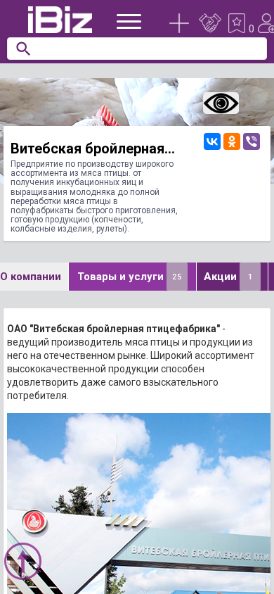 | AI-анализ | The portal is a website for Vitsebskaya Broilerная Ptycefabrika OAO, a company that produces a wide range of poultry meat products from the acquisition of incubation eggs to the final processing of poultry meat into half-finished products and ready-made products (sausages, sausages, rolls). The company's address is 211312, Trikubtsy d., 1a, p/o Ruba-2, and contact information is provided on the website. The website also includes sections for news, vacancies, and company information. The company is a leading producer of poultry meat and related products in the Belarusian market, with a wide range of high-quality products that can satisfy even the most demanding consumers. The company is considered an autonomous enterprise with a closed production cycle, as all processes from the acquisition of |