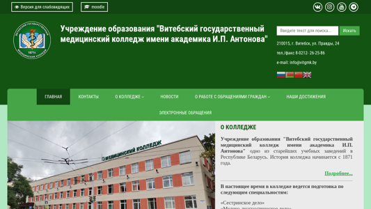 | SEO-описание | Витебский государственный медицинский колледж имени академика И.П. Антонова |