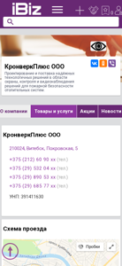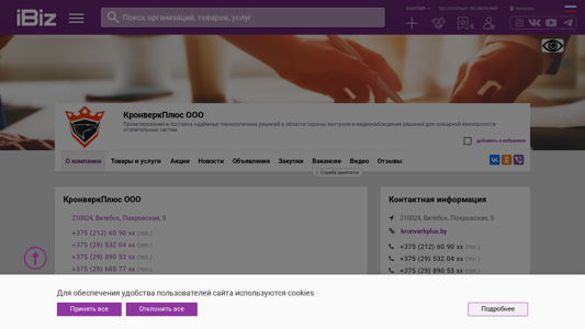 | AI-анализ | language: ru This website is for KronverkPlus OOO, a company located in Vitsebsk, Belarus at the address Покровская, 5. The company specializes in designing and supplying reliable technological solutions in the fields of security, control, and video surveillance for fire safety and heating systems. The website provides contact information including multiple phone numbers, and an address for the company. The domain is registered under the top-level domain .by for Belarus and the second level domain ibiz.by for the company IBIZ Media. The website is in the Russian language. |