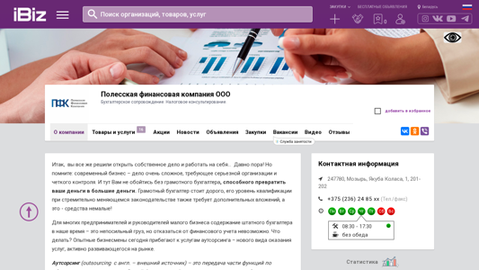 | AI-анализ | This website is for a Belarusian financial company named "Полесская финансовая компания ООО" located in Mozir at Якуба Коласа, 1, 201-202. The company offers bookkeeping and tax consulting services. The website provides information about the company's location, contact telephone numbers, and address. The top keywords associated with the website are "company," "services," "Polessian," "financial," "accounting," and "outsourcing." The company specializes in outsourcing bookkeeping services, allowing businesses to save on operational costs while maintaining high-quality services. |