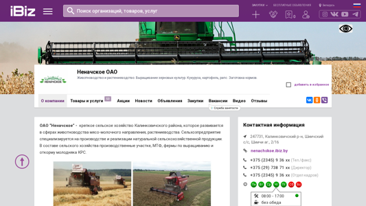 | AI-анализ | The portal is a Belarusian agricultural company, Neначское ОАО, specializing in livestock farming and crop production. The company focuses on the cultivation of cereal grains such as corn, potatoes, and rapeseed, as well as the collection of fodder crops. The address provided is 247731, , Шиичский с/с, Шиичи аг., 2/16. The company offers products including meat from livestock, milk from livestock, cereal grains, potatoes, rapeseed, and agricultural produce. The agricultural land grows wheat, barley, oats, triticale, sunflower seeds, and other crops, with a gradual increase in yield. The machinery park includes tractors, harvesters, cultivators, and other agricultural equipment. Neначское ОАO wel |