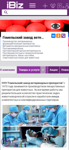 | AI-анализ | The website is a Belarusian veterinary pharmaceutical factory named "Гомельский завод ветеринарных препаратов ПУП". It specializes in the production of veterinary pharmaceutical products, including vitamin-mineral complexes, antibiotic, antiparasitic, anti-inflammatory, and gynecological preparations. The factory also produces mazes, tinctures, and spirituous solutions for animals. The address and contact information for the company are available on the website. |