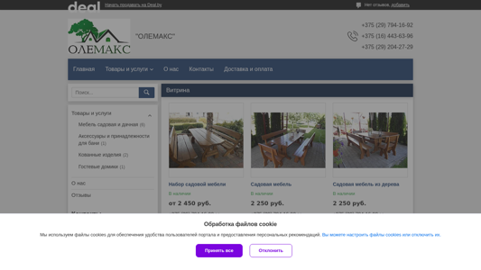 | AI-анализ | The web project "ЧУП "ОЛЕМАКС"" is a Belarusian e-commerce site offering contacts, products, and services for the company "ЧУП "ОЛЕМАКС"". The site focuses on selling various types of furniture, including garden and cottage furniture, as well as accessories and decorations for bathhouses. The site features multiple contact numbers, including international calling codes, and offers a wide range of prices in the local currency. The site also mentions a producer and a guarantee for some of the products. The main categories of goods include garden furniture, bathhouse accessories, and metalwork. Some items are available for purchase with prices and phone numbers listed. The site is registered under the .BY top-level domain and is hosted on the Deal.by platform. |