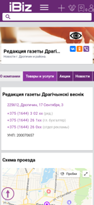 | Адрес | г. Дрогичин и района. . 225612, Дрогичин, , 17 Сентября, 3" |