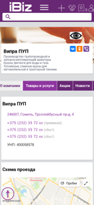 | AI-анализ | The website is a Belarusian business platform for the sale and production of plumbing and piping equipment, including pipes, fittings, valves, and cranes for both water and gas, as well as fuel and drain tanks for automobile and tractor technology. The company, named Випра ПУП, is located in Гомель, Belarus, at Троллейбусный пр-д, 4. Contact information includes three phone numbers for sales, reception, and sales again. The company also has a Yandex map scheme for easy navigation. Keywords associated with the website include 'production', 'pipes', 'tubing', 'fittings', 'valves', 'cranes', and 'sales'. |