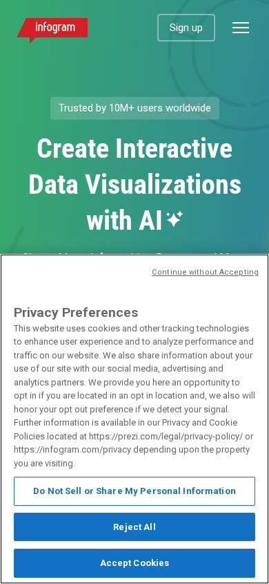 | SEO-описание | Infogram is an easy-to-use, AI-powered tool for creating stunning infographics, charts, dashboards, maps, and more. Effortlessly design and share interactive data visualizations across various platforms. |