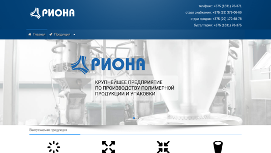 | AI-анализ | The portal Riona.by is a manufacturing company specializing in the production of polymer products and packaging. The main products include polymeric tanks, polypropylene tanks with IML, polyethylene stretch film, thermo-shrink films, polyethylene stretch wrap, agro-stretch film, black-and-white cover film for silo covers, wide films, and films for lamination. The company is the largest producer of polymer products and packaging in the industrial and agricultural sectors. The produced items include black-and-white cover film used for covering silo trenches, polyethylene stretch film, thermo-shrink films, and polymeric tanks for packaging and storing food, cosmetic, and industrial products. The company was established in 2002 and currently operates with six lines for producing single-layer polymeric sheets, three lines for |