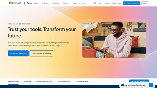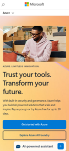 | AI-анализ | The portal "Cloud Computing Services | Microsoft Azure" provides information and resources for exploring, building, and implementing various cloud computing solutions from Microsoft Azure. With a focus on open and flexible platforms, Microsoft Azure offers services for data management, machine learning, AI, containers, and more, as well as tools for application development and deployment. The site includes popular products like Azure AI Foundry, Azure Kubernetes Service (AKS), Azure Cosmos DB, and Azure Database for PostgreSQL, among others. Users can also access Azure DevOps, Azure Functions, and Azure Virtual Machines, as well as Azure's hybrid and multicloud offerings. Keywords associated with the site include "azure," "cloud," "services," and "microsoft." |