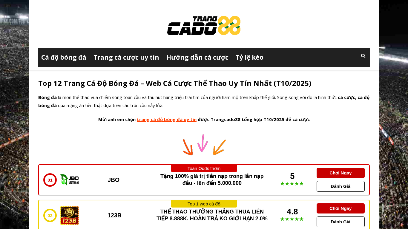 | Название / Заголовок | Top 12+ Trang Cá Độ Bóng Đá - Web Cá Cược Uy Tín Nhất Việt Nam & Thế Giới (T10/2025) |
