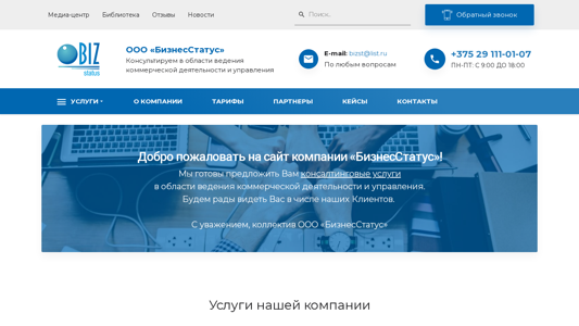 | AI-анализ | The web project "БизнесСтатус" (bizst.by) is a consulting company, as indicated by its title and keywords. The company offers various services related to business management and commercial activity, including tax consulting, business planning, and accounting. The description mentions several specific services, such as VED outsourcing, tax optimization, and legal and administrative services. The site also includes a media center with news and a library of reviews, as well as contact information for the company. The domain was registered in 2015. |
