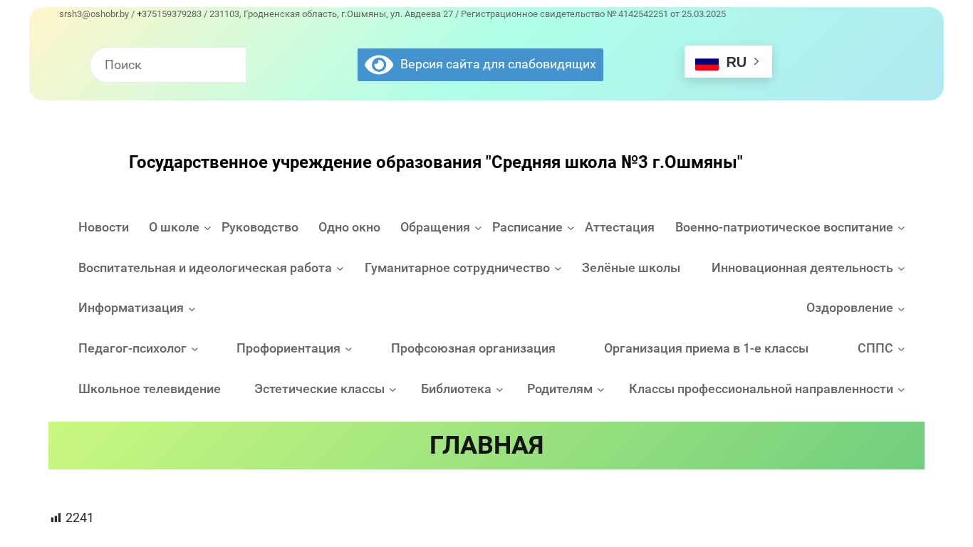 | Название / Заголовок | Главная - Государственное учреждение образования "Средняя школа №3 г.Ошмяны" |